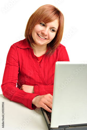 Naklejka premium Büromitarbeiterin arbeitet am Laptop