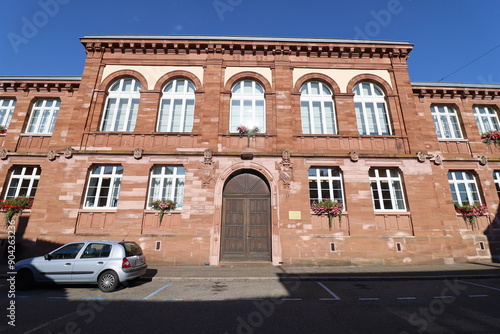 Obraz premium Bâtiment typique, vue de l'extérieur, ville de Wissembourg, département du...