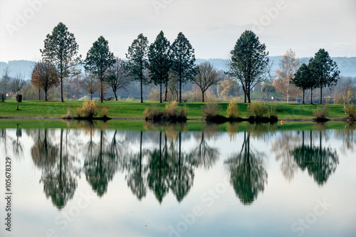 © Gina Sanders, Fototapeta premium Bäume spiegeln sich im See