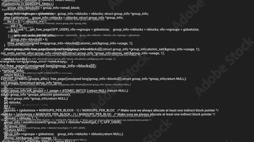 © Unwind, Fototapeta premium B&W screen coding hacker concept animation with glitch. Programming code typing error. Big data and Internet cyber attack. Programming code abstract. Blockchain concept, computer digital code