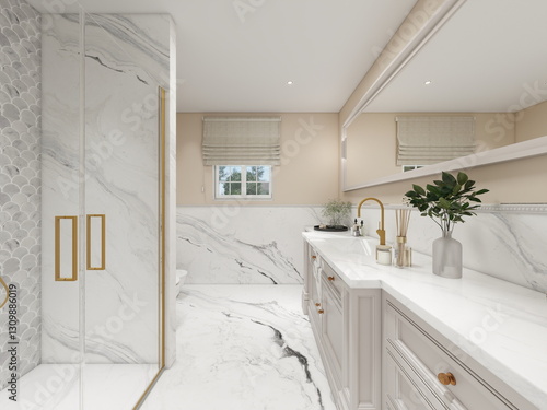 Fototapeta premium baño moderno de casa de diseño . estética minimalista clásica