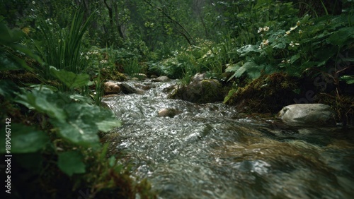 Obraz premium Babbling brook in lush green forest