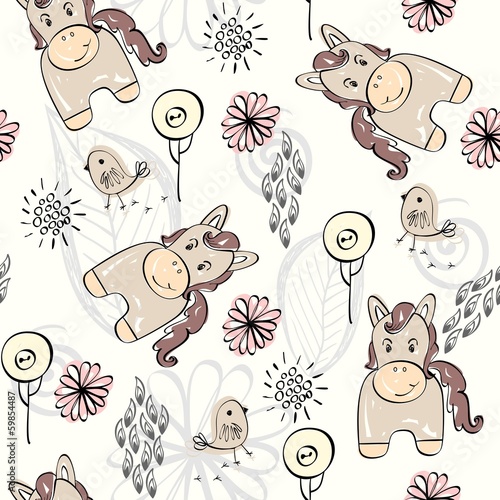 © Tapilipa, Fototapeta premium babies hand draw seamless pattern with horse