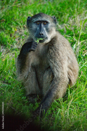 Obraz premium Baboon eating grass