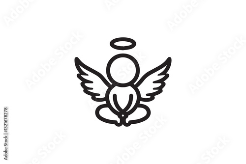 © Hasan Asib, Obraz premium baby angel silhouette vector illustration in black and white, set against a white background