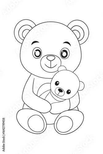 Fototapeta premium Baby Bear Holding Teddy Bear Toy Outline Vector