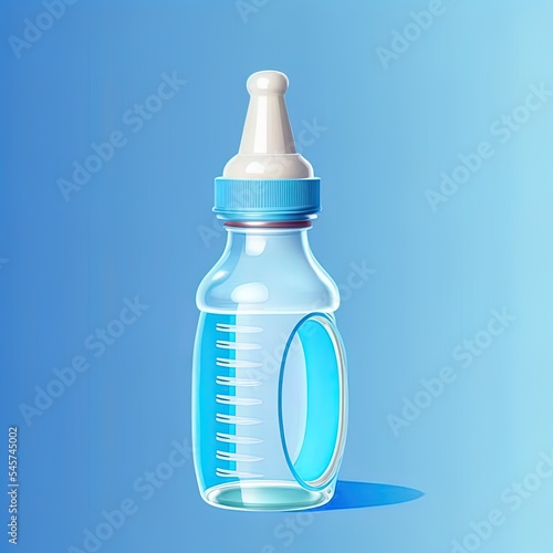 Fototapeta premium Baby bottle on blue background.