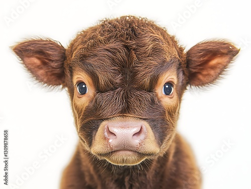 © santi, Fototapeta premium Baby brown calf portrait on white background