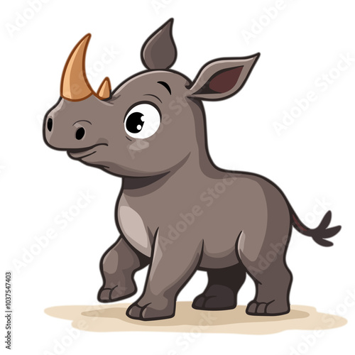 Fototapeta premium Baby cartoon rhinoceros with small horn standing against light background