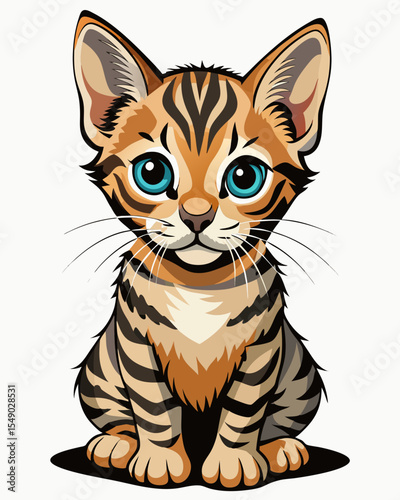 Obraz premium baby Cat realistic design and bold line black , white background ,full color