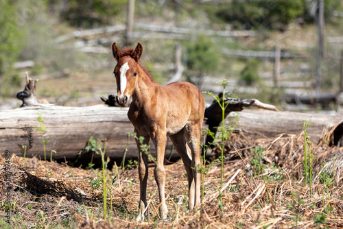 © htrnr, Fototapeta premium Baby colt wild horse with blaze in the Apache Sitgreaves National Forest mountains in Heber Arizona United States