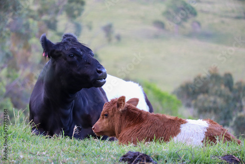 Fototapeta premium Baby cow photography, calf in green grass