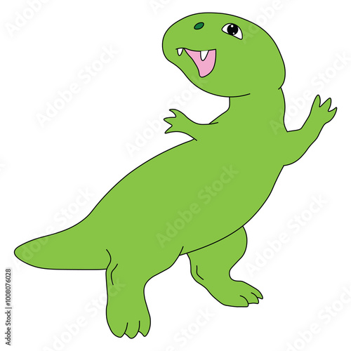 Fototapeta premium baby dinosaur tyrannosaurus joyfully raised his paws up, cartoon, easy to...