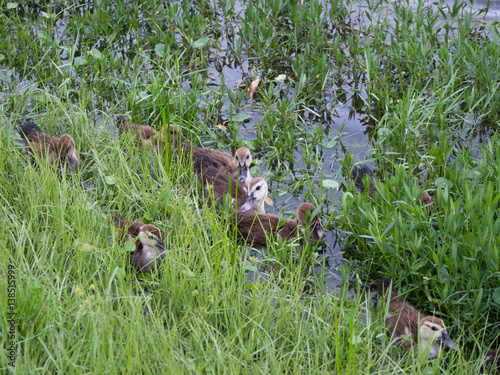 © bucknut4pic, Obraz premium Baby Ducks near a Grassy Bank