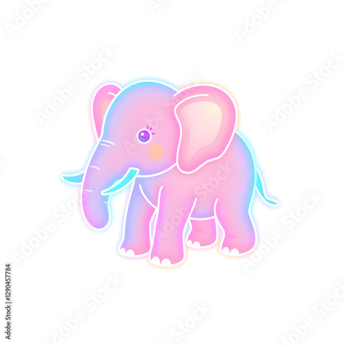 © Tark, Fototapeta premium Baby elephant holographic 3D icon. neon symbol vector illustration isolated on white background. Generative AI