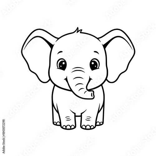 © Marek49, Naklejka premium Baby Elephant Line Art. Black and White Vector Icon for Kids' Logo, Gentle Animal Mascot, Sweet/Playful Symbol, or Nursery Decor/Baby Shower/Apparel Branding. Generative ai