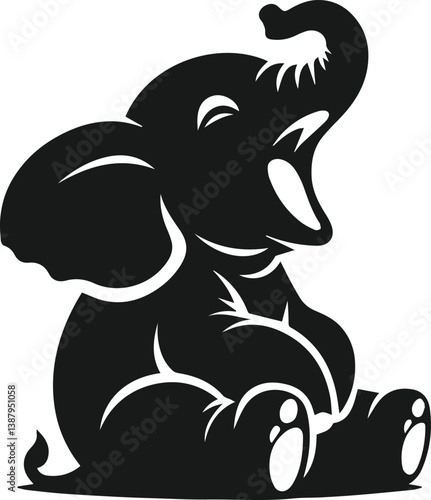 © MstSumi, Obraz premium Baby elephant silhouette vector