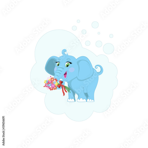 Fototapeta premium Baby elephant with flowers. Vector illustration.