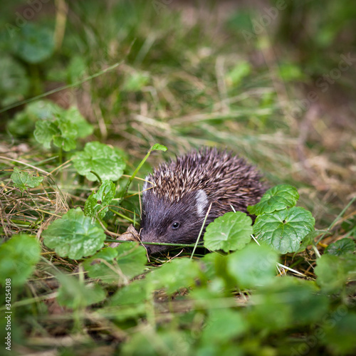 © lightpoet, Fototapeta premium Baby European Hedgehog sniffing in grass,