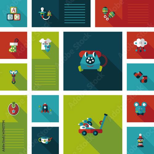 © eatcute, Naklejka premium baby flat ui bakcground set
