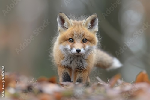 Naklejka premium Baby Fox: An adorable baby fox kit with reddish fur and a bushy tail,...