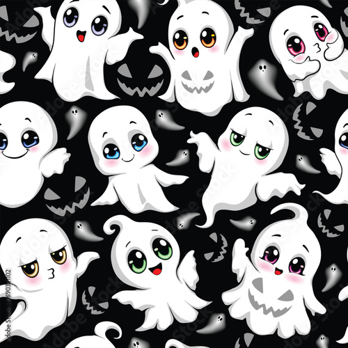 © BluedarkArt, Fototapeta premium Baby Ghosts Spooky and Cute Halloween Cartoon Characters Textile Vector Seamless Repeat Pattern Motive