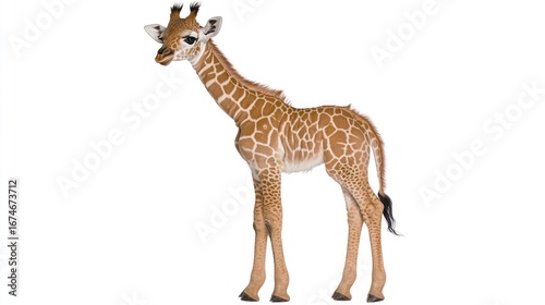 © afridwi, Fototapeta premium Baby giraffe on white background studio portrait