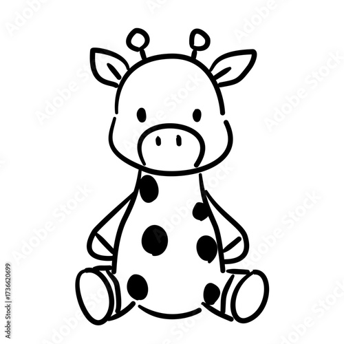 Naklejka premium Baby giraffe plush baby shower line art doodle illustration hand drawn black...
