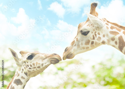 Naklejka premium Baby giraffe with lovely mom