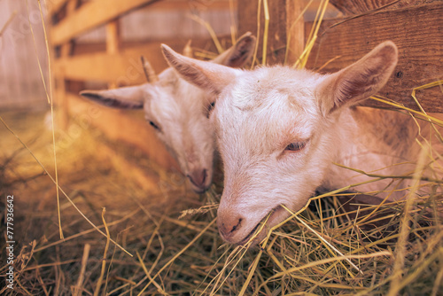 Fototapeta premium Baby goats on animal farm.High quality photo.
