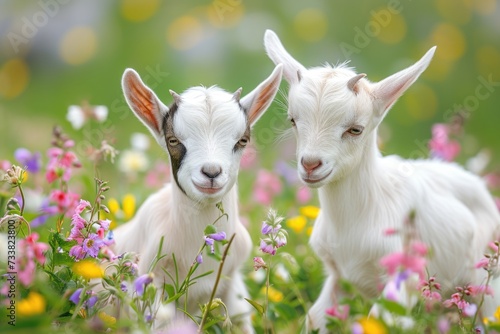 Obraz premium Baby goats playing in field.
