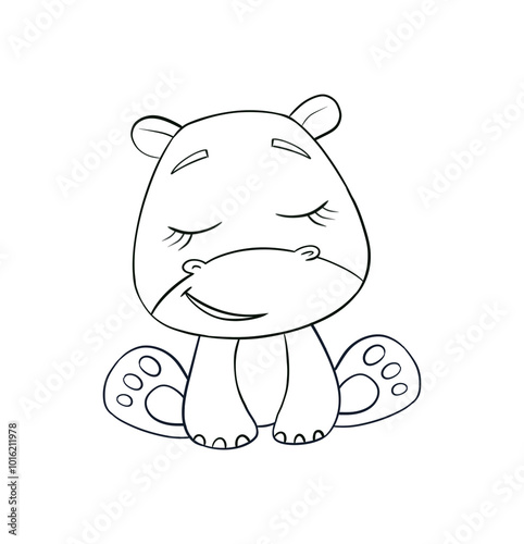 © NATALIA, Fototapeta premium Baby hippo line art. Coloring page of Cute Cartoon hippo for kids coloring book
