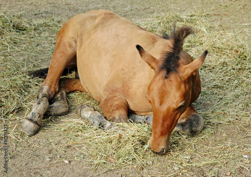 © Riccardo Arata, Fototapeta premium baby horse sleep