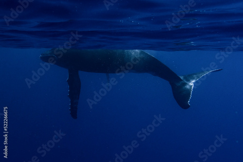 Fototapeta premium Baby Humpback Whale swimming in Moorea French Polynesia