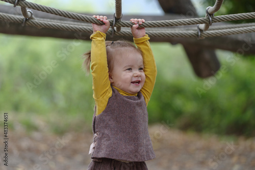 Fototapeta premium Baby is playing outside