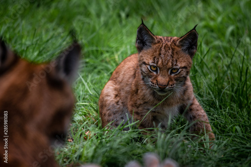 © Jesper, Fototapeta premium Baby lynx sneaking up on mom
