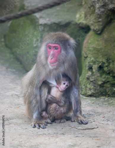 Fototapeta premium baby monkey with mother monkey zoo Africa mammal animal