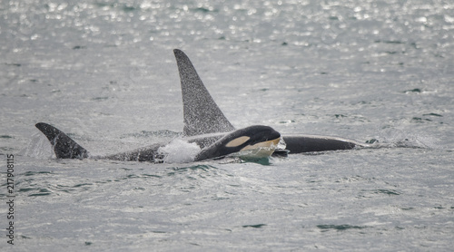 Fototapeta premium Baby Orca Swimming with Family, Alaska