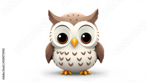 © Tark, Fototapeta premium Baby owl, cartoon, tiny cute and adorable owl. 3D illustration Generative AI
