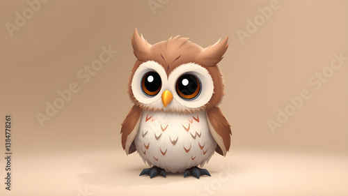 © Tark, Fototapeta premium Baby owl, cartoon, tiny cute and adorable owl. 3D illustration Generative AI