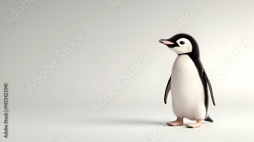 Naklejka premium Baby Penguin Standing Against Light Gray Background