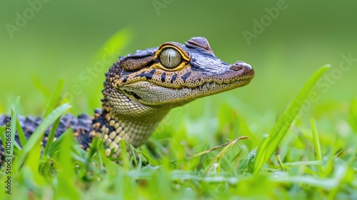 © Seyyar, Obraz premium Baby Porosus Crocodile Among The Grass