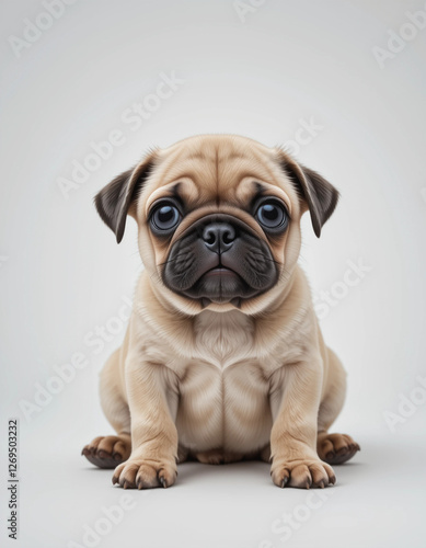 © Y. L. Photographies, Obraz premium Baby Pug Puppy Sitting with Wrinkled Face