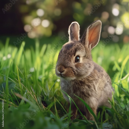 Fototapeta premium Baby rabbit in grassland in spring time