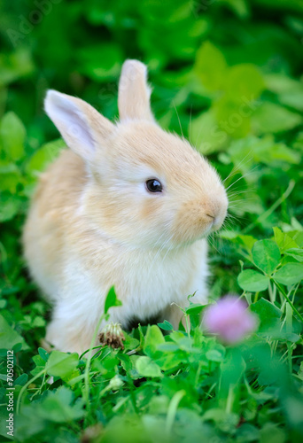 © nmelnychuk, Fototapeta premium Baby rabbit in green grass