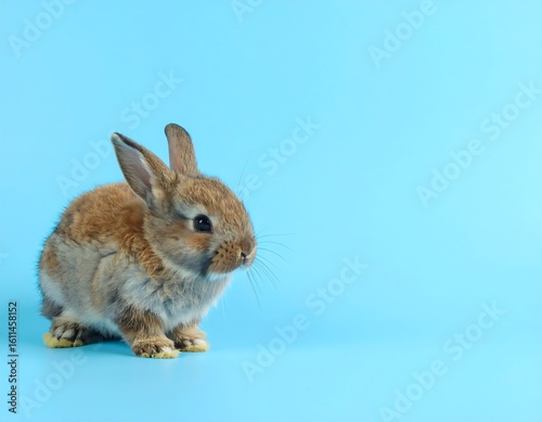 Obraz premium Baby rabbit on blue backdrop