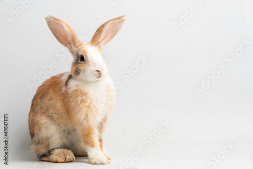 © Mizkit, Obraz premium Baby rabbit on white background , Cute Little rabbit healthy isolated on white