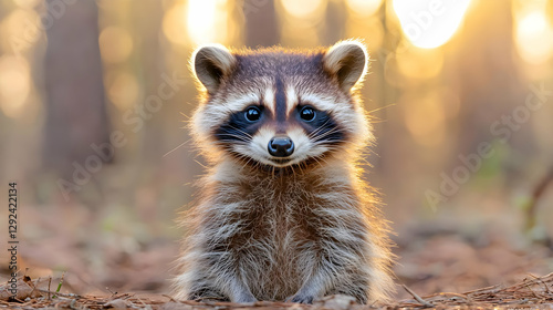 Fototapeta premium Baby raccoon sunset forest wildlife nature