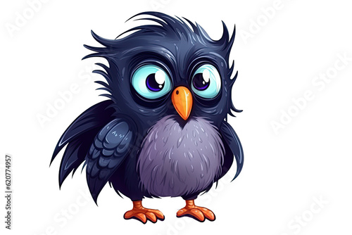 Obraz premium baby raven on white isolated background. Cartoon character bird. Generative...