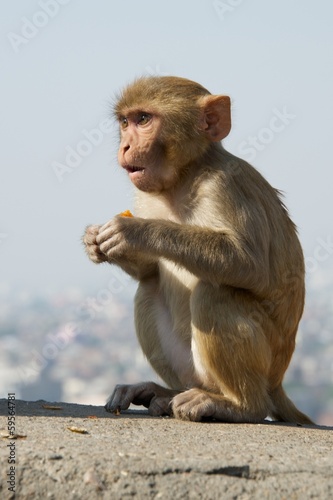 © Nick Dale, Naklejka premium Baby rhesus macaque looking surprised